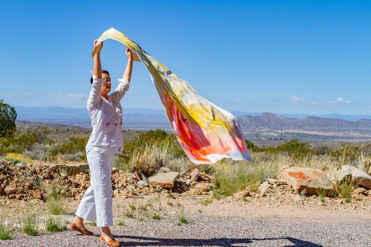 The Truth or Consequences Series was created during a residency in New Mexico in October 2019. Outside in the desert, I worked on body-size unstretched canvas. Because the canvas was unstretched, each media I applied to the surface caused buckling and wrinkling, an intentional part of my desire to think about the surface as a parallel for skin. My process included scraping, flooding, and burning these works with the intent to impart the making process - or the life experience - onto the canvas. The end result of a heavily impacted, wrinkled surface that is un-taught, loose, and not quite square calls to mind how the skin on our bodies reflects back our internal and external experiences. How resilient is the body? When our bodies show signs of aging or trauma, such as sagging, wrinkling, stretch marks, or scars, what does it expose about who we are?